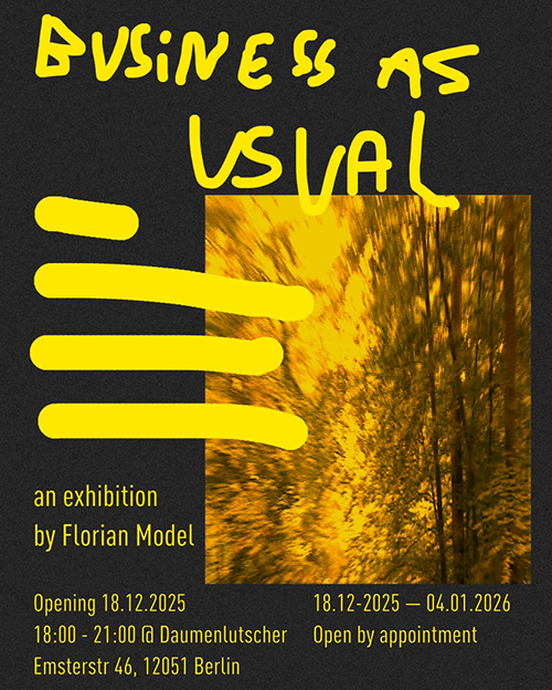 FLORIAN MODEL - BUSINESS AS USUSAL, opening at OLD ADDRESS EMSERSTR. 46, 12051 BERLIN - 18 DECEMBER TO JANUARY 4TH 2026