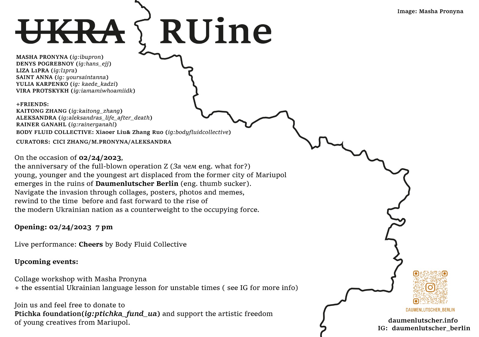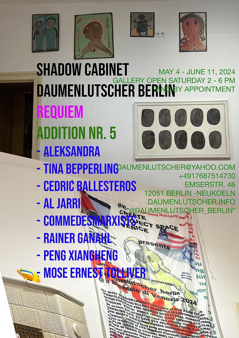 DAUMENLUTSCHER UNDERWENT A MOMENT OF CRISIS THE CURATOR WAS RAPED AND SENT TO THE MENTAL HOSPITAL I WAS ARRESTED IN NYC AGAINST MY WILL AND MY SECURITY WAS BREACHED ON SEVERAL OCCASIONS THE WAR IN THE UKRAINE GOES ON AND THREATS AGAINST MY OWN PERSONA SIMPLY BECAUSE I RECORD PEOPLE WHO ARE BLATANTLY ANTI SEMITIC IS NO REASON TO GIVE UP ON THIS GALLERY