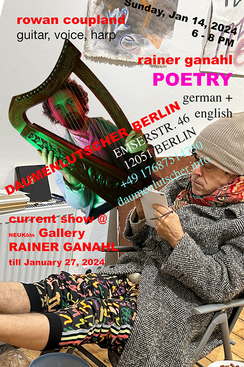 follwed by a one person show of RAINER GANAHL December, friday 8th 2023 - mid January end of January 2024
