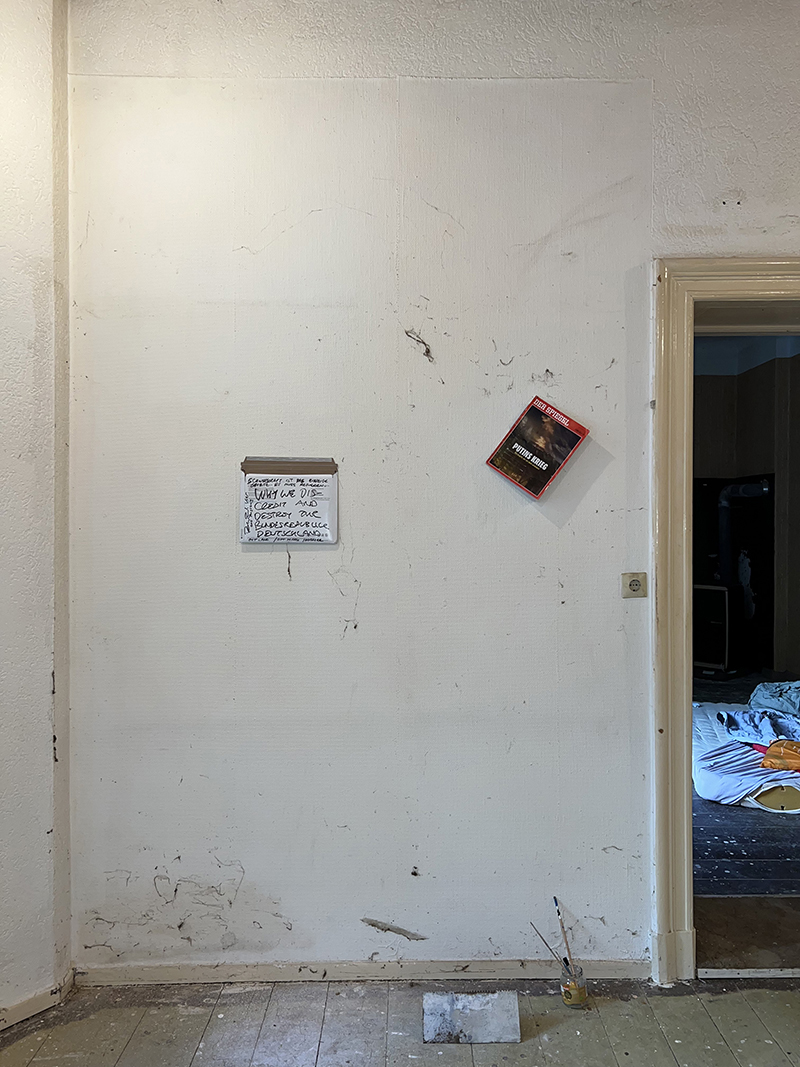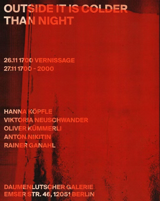 Daumenlutscher is again appplying to 48 neukeoln 2026 with this concept HOW TO GET OUT OF HERE Hannah Koepfle Artists and creative people are constantly on the run, whether they know their destination or their destiny.. they run.. Run, Run, Run. Daumenlutscher is pleased to work with old and new talents and artists who understand that art is more than just picking up trash from the internet or the streets, or some art school. It is more than just “I can do this as well”. They look for something beyond trauma, recycling and noise. They are interested in process that depends on reflections and myriads of hesitations that land in the margins before they cross the threshold to a world that seems too far or too alienated and too impossible to reach. They exhaust themselves in propositions with coldness and a cool that vanishes the popular sense of existing. Art is a process that reaches beyond the regular fast done job and depends on consistency and loyalty over decades to land in nowhere land when not supported by a net work of people who really love and believe in fine art or a national network of institutions that believe in an ideology that tries to correct politics. Daumenlutscher has two locations that are used to provide a place for artistic and cultural experimentations without the slightest hint of what should be the result. Daumenlutscher has learned the hard way, the politics is everywhere and nowhere and hence…. not a place to believe in from a purely artistic perspective albeit of what really can’t be ignored. Lesson number one in Berlin is that independence has a huge price. “To get out of here” is more than just a topographical question but also a temporal and one that has justice at the “vertige” point - translate the French word not wiht VERTIGO but get beyond the anxious void that so many cannot face . (artist list subject to change